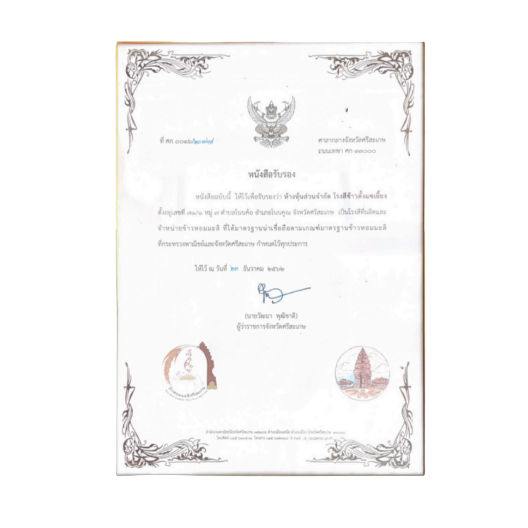 Our Hom Mali Rice is authentic jasmine rice genetic 105 from Ubon and Sisaket. -Jasmine rice 105 is officially known as Khao Hom Mali 105 certified the breed on May 25, 1959 . Rice is authentic Hom Mali Rice 105 with its own unique aroma.